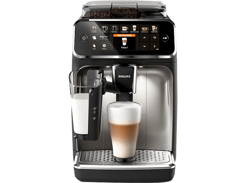 Ekspres ciśnieniowy PHILIPS Series 5400 LatteGo EP5447/90 Dotykowy wyświetlacz AquaClean Czarno-srebrny