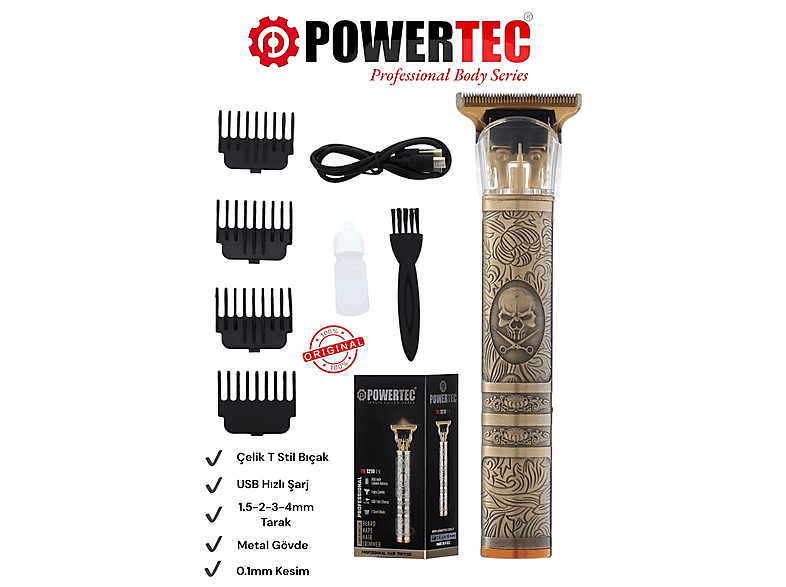 POWERTEC TR-1210 Sakal Vücut Kıl Tüy Alma Kadın Erkek Lazer Öncesi Tıraş Makinesi Altın